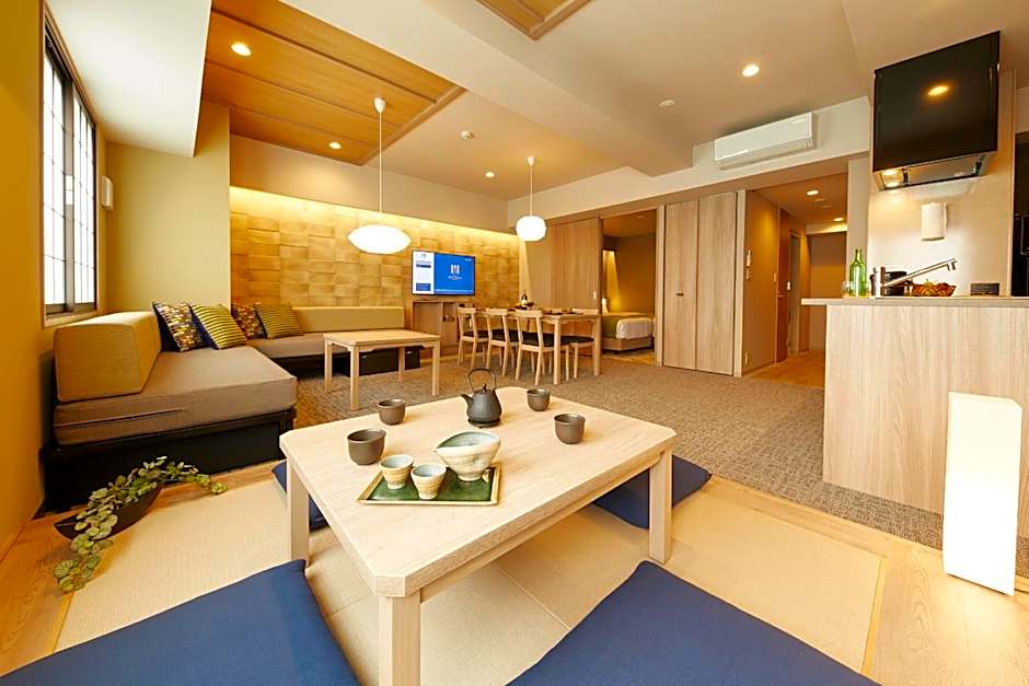 This spacious suite is consisted of of 1 living room, 1 separate bedroom and 1 bathroom with a bath and free toiletries. The well-fitted kitchen has a stovetop, a refrigerator, kitchenware and a microwave. The suite features tatami floors, a seating area with a flat-screen TV with streaming services, air conditioning, a washing machine, as well as a dining area. The unit offers 4 beds and 2 futons.